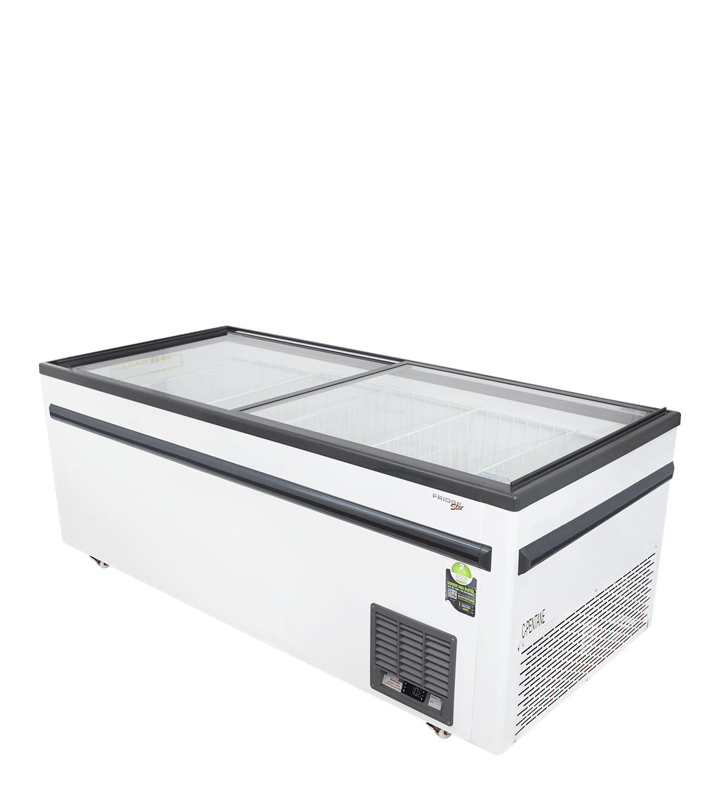Flat Top Freezer Two Sliding Lids Low E Glass Fan Cond R290 Castors Ems 785x2050x950 (862 Litres)