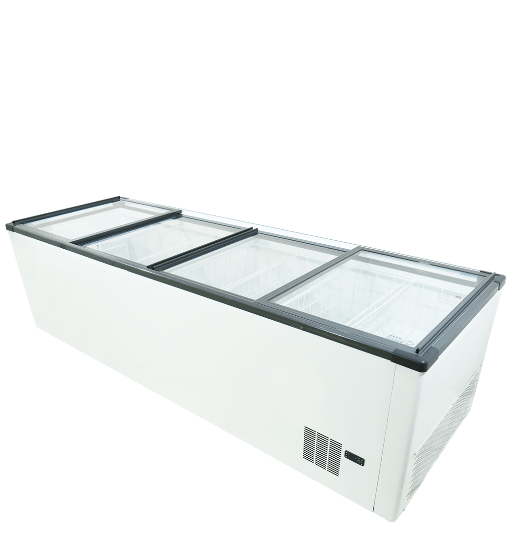 Flat Top Freezer Two Sliding Lids Low E Glass Fan Cond R290 Ems 740x2545x875 (975 Litres)